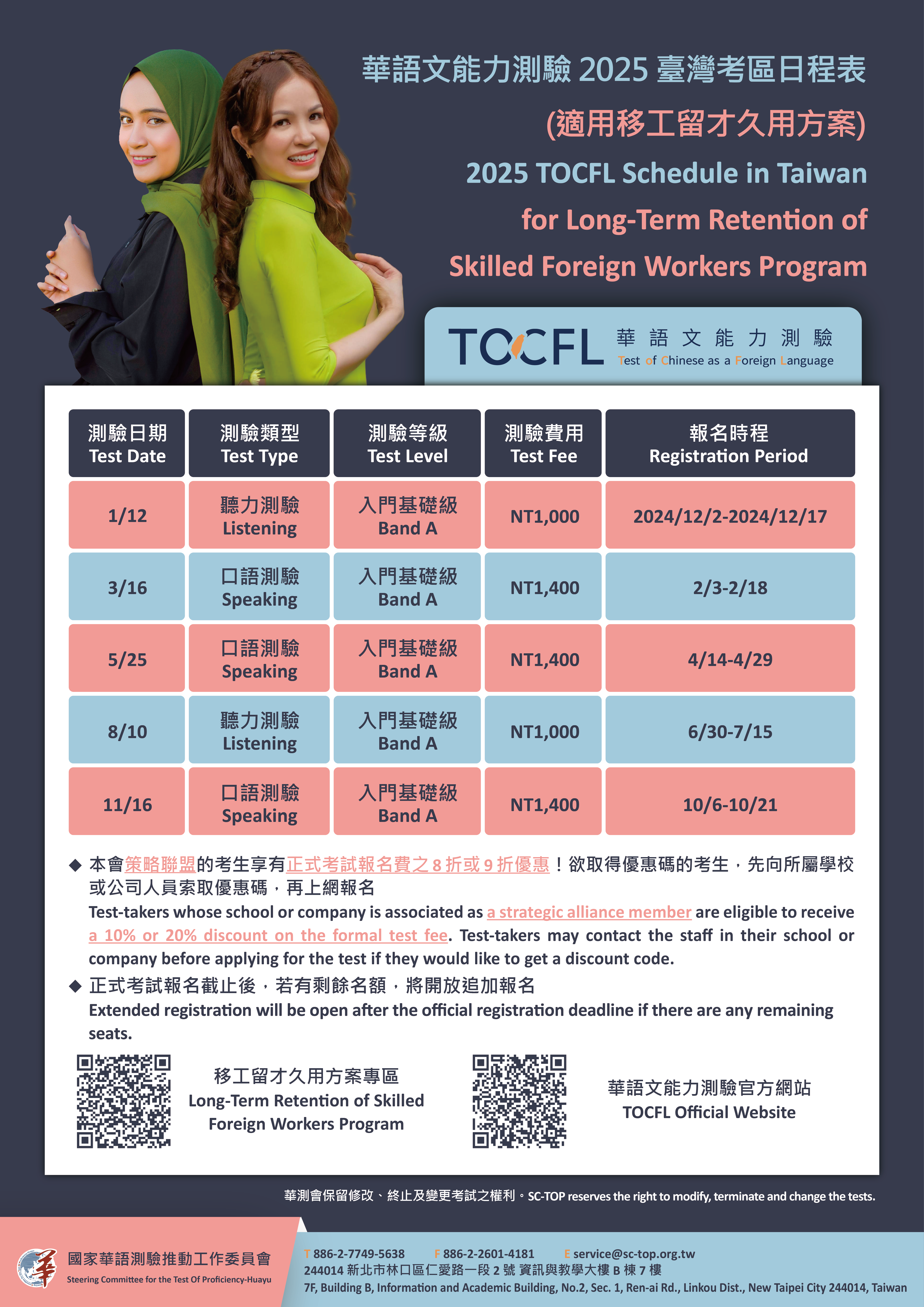 (三)為配合勞動部移工留才久用方案,舉辦2次聽力測驗正式 考試及3次口語測驗正式考試,皆於週日辦理。