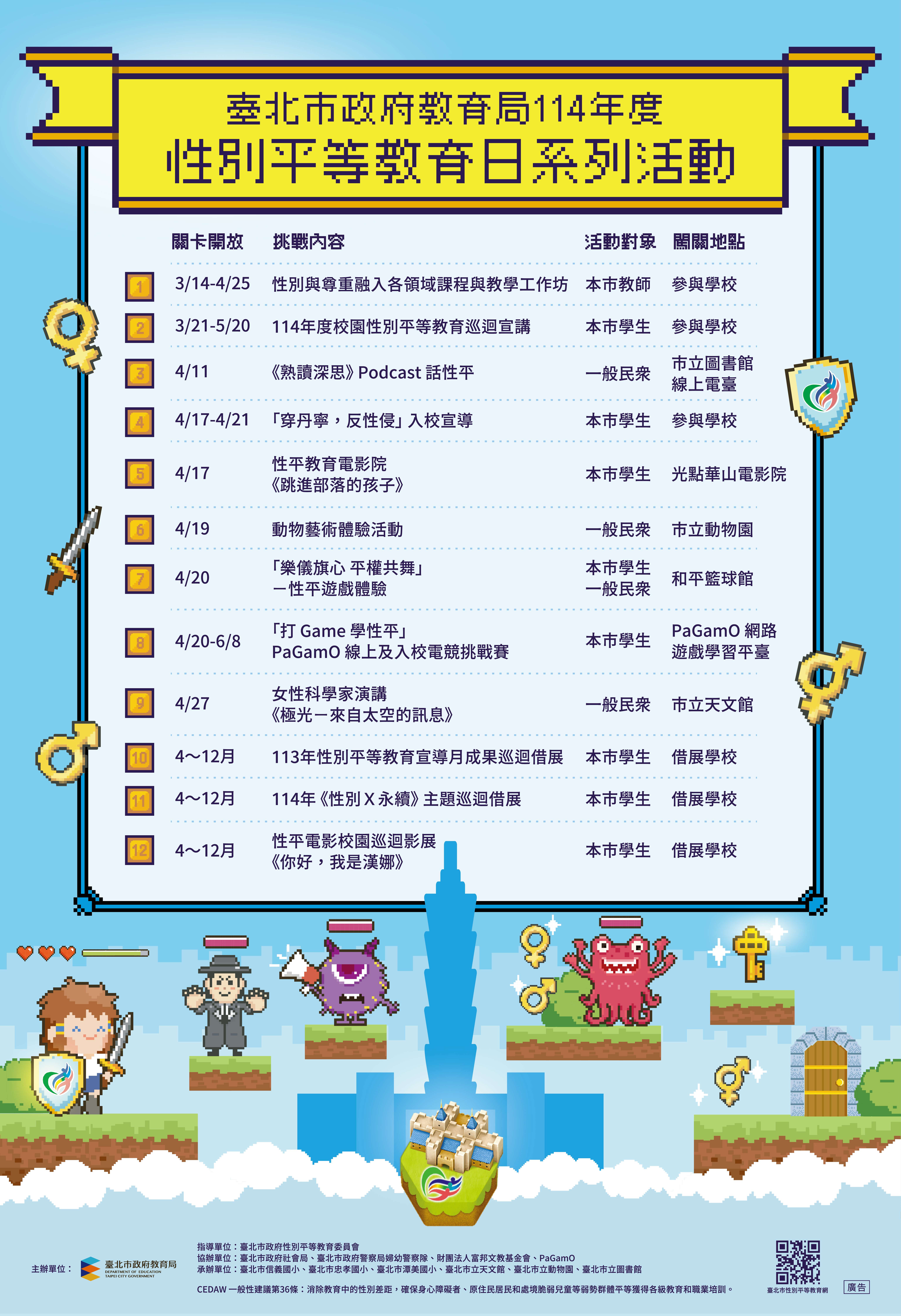一、依本局114年度「性別平等教育日」系列活動實施計畫辦 理。