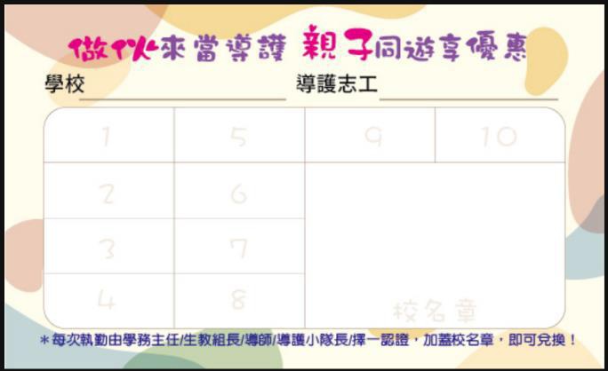 臺北市國民小學交通導護志工服務獎勵試辦計畫「做伙來當導護 親子同遊享優惠」